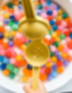 Open the juicer, grab the pom poms, squish them in & then squeezeeeeeeee!