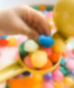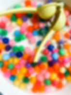 Fill the bowl or tray with Pom Poms, then cover with water.
